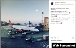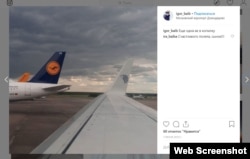 • 22 июля. Байбаков делает пост, на котором виден одномоторный самолет Cessna 182. Подпись переводится на русский так: "Диспетчер говорит: ваш самолет слишком мал, мы не видим его в небе". Радио Свобода удалось установить его регистрационный номер – RA-67717 (подробнее см. врезку).