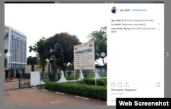 • 29 июля. Игорь Байбаков публикует в Инстаграме несколько фото и видео из столицы Центральноафриканской Республики, города Банги. На этих фотографиях запечатлено, в числе прочего, здание правительства ЦАР.