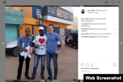 • 18 июня. Байбаков публикует в Инстаграме фотографию из столицы Судана Хартума. На ней он позирует с местными жителями, которым, судя по всему, подарил перед этим сувениры из России. Снимок (сейчас уже удаленный) сделан в районе торговой улицы ​Pepsi St., расположенной недалеко от международного аэропорта Хартума. Можно предположить, что именно в Хартум Байбаков и отправился из Москвы 7 июня – "Египетские авиалинии" в 2019 году предлагают самые удобные и дешевые билеты на рейсы из Москвы в суданскую столицу через Каир на эти даты. Напомним, в Хартум как минимум с августа 2018 года регулярно летают самолеты Минобороны, "Новая газета" засекла здесь бизнес-джет Евгения Пригожина, западные СМИ писали не только о бизнес-интересах "повара Путина" в Судане, но и об участии российских военных инструкторов в подавлении антиправительственных беспорядков в стране.