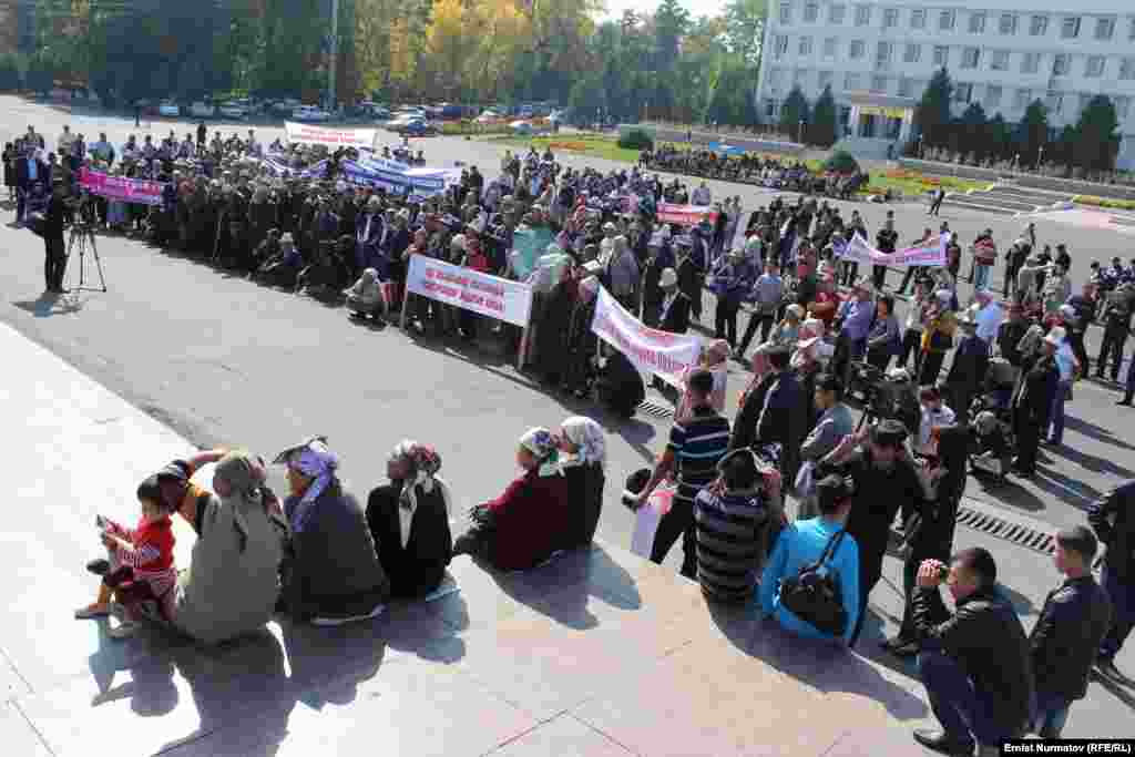 На центральной площади в Оше прошел митинг сторонников оппозиционной партии "Ата-Журт". По разным данным в акции приняли участие около 400 человек. Во время попытки установки юрты на площади возникла потасовка между участниками акции и милиционерами. Фоторепортаж Эрниста Нурматова, "Азаттык", Кыргызская служба РСЕ\РС